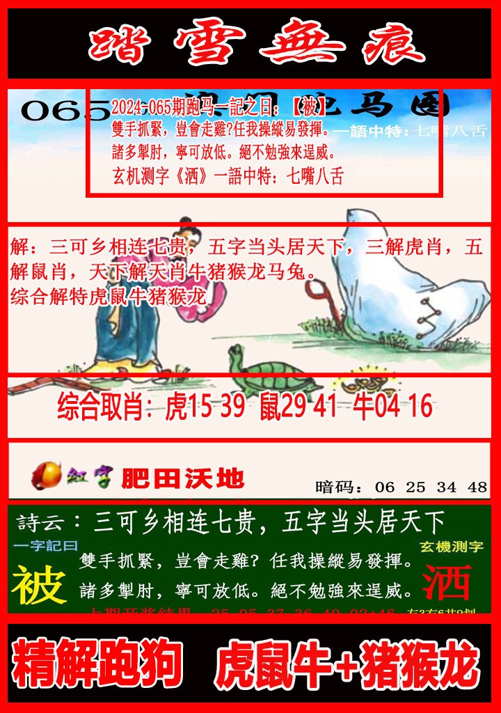 065期六肖中特【马虎狗鼠牛兔 】 |